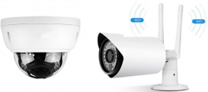 There are two kinds of security cameras in the market — wireless security cameras that transmit videos and audio signals via WiFi, and PoE security cameras which transmit videos and power through one network cable. Both constitute a home and business security camera system.